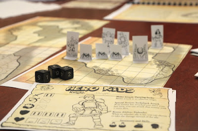 El caso es que llevaba un par de semanas jugando con mi hijo el mayor tonteando con dados miniaturas y mapas y descurbí que estaba más que preparado para hacer una segunda intentona. Bastaba con sistematizar un poco lo mismo que estábamos haciendo a lo loco con unos dados de piedra, papel y tijera. Así que acudí a la procelosa red de redes para elegir sistema y me decanté por uno al que llevaba tiempo siguiendo la pista: Hero Kids RPG (¡ENLACE!). Descarté Dagger (¡ENLACE!) por parecerme demasiado complejo (viene a ser el D&D un poco simplificado), y el First Fable (¡ENLACE!) por ser demasiado Fatero (los niños no tienen tanta capacidad para lo indie).